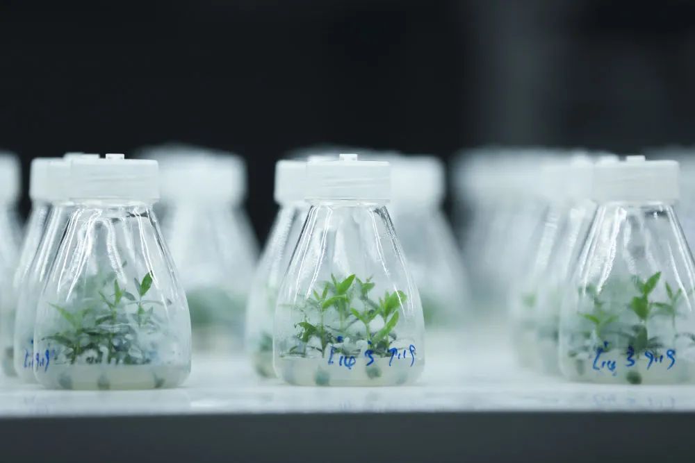 ↑在位于甘肅省隴南市武都區(qū)的隴南市經(jīng)濟(jì)林研究院實(shí)驗(yàn)室內(nèi)拍攝的油橄欖組培苗。