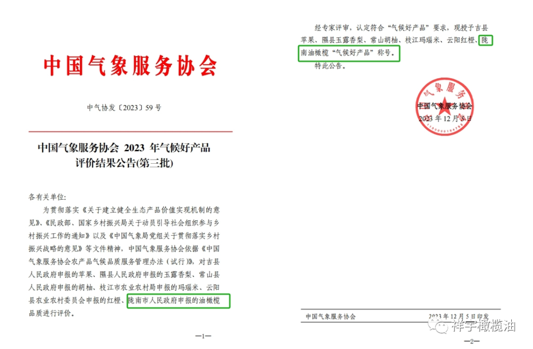 隴南油橄欖榮獲2023年“氣候好產(chǎn)品”稱(chēng)號(hào)