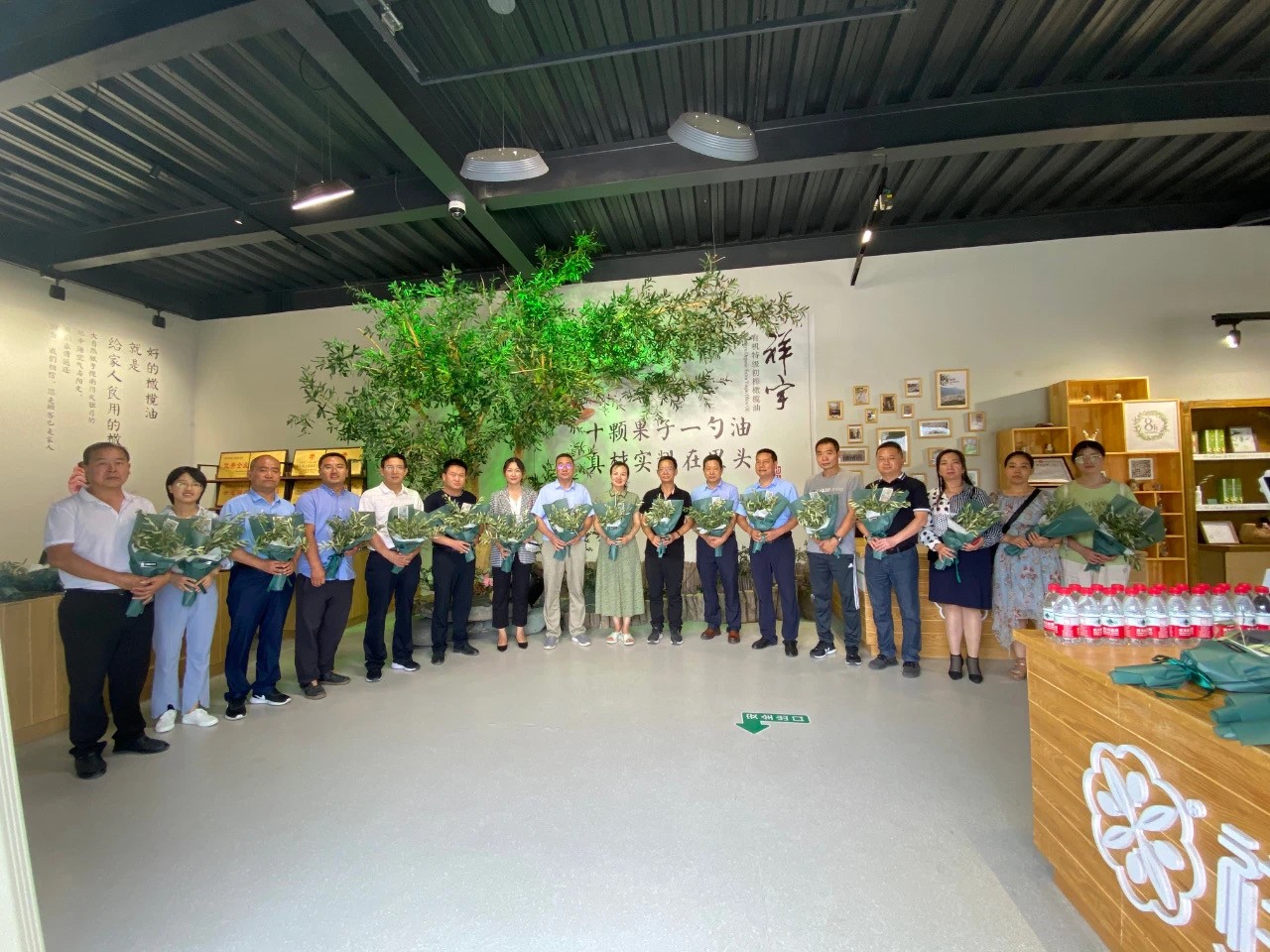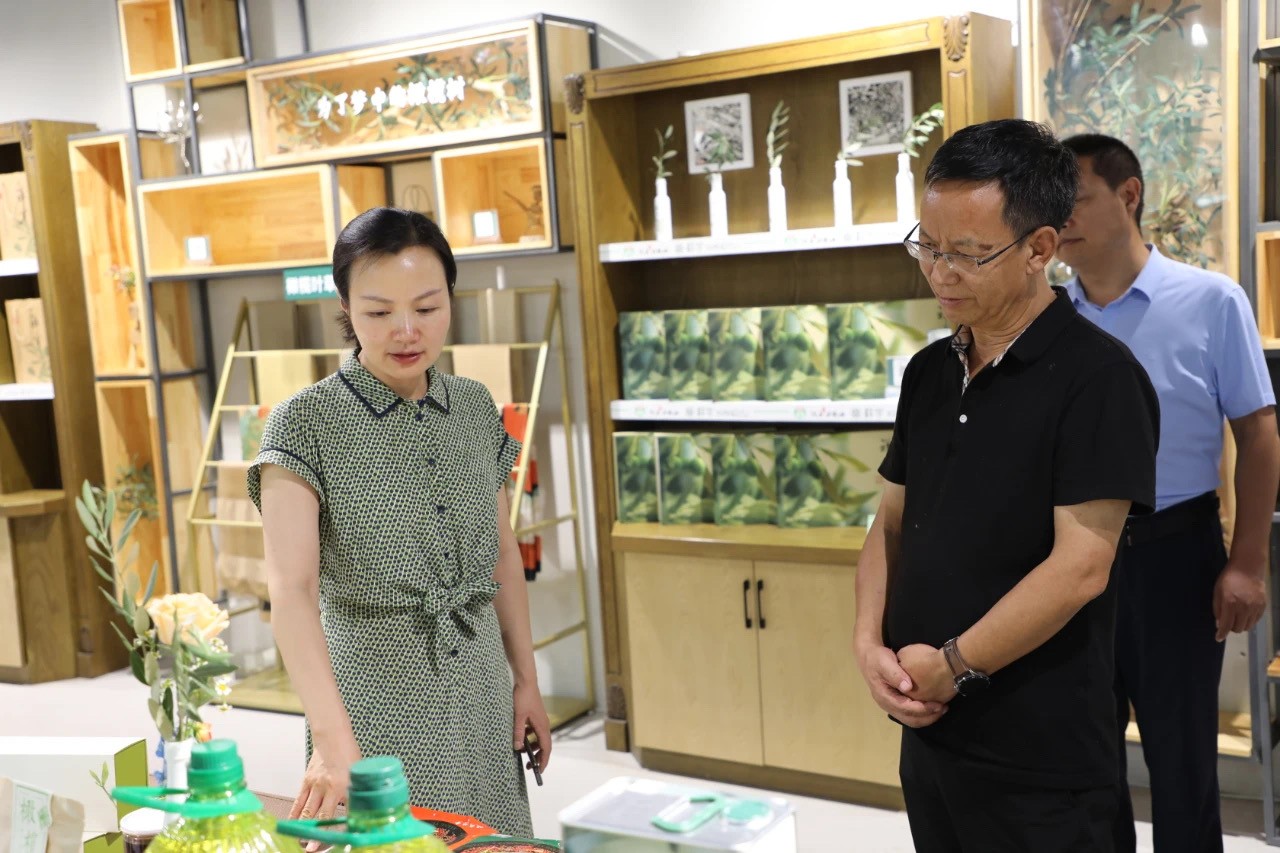 在產(chǎn)品體驗(yàn)區(qū)劉玉紅董事長向趙校長一行介紹了祥宇特級初榨橄欖油、橄欖茶、橄欖菜、橄欖保健品等系列產(chǎn)品,